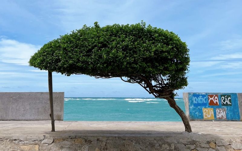 Cuối cùng, bạn đừng quên check-in tại "Cây cô đơn" nằm trên bờ kè - một biểu tượng độc đáo trên đảo Phú Quý thu hút nhiều bạn trẻ đến chụp ảnh.