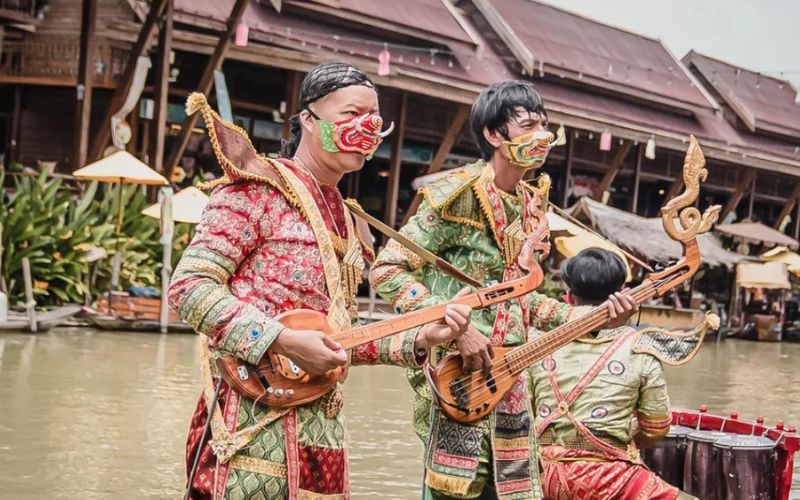 Khách du lịch có thể tham gia những hoạt động dân gian như chơi dương cầm, ca múa hát và trải nghiệm những nghi lễ đặc trưng của miền Bắc. Hoặc đến xem Muay Thái trên sông và trải nghiệm mặc trang phục truyền thống để chụp những bức ảnh bên dòng sông bắc ngang chợ nổi.