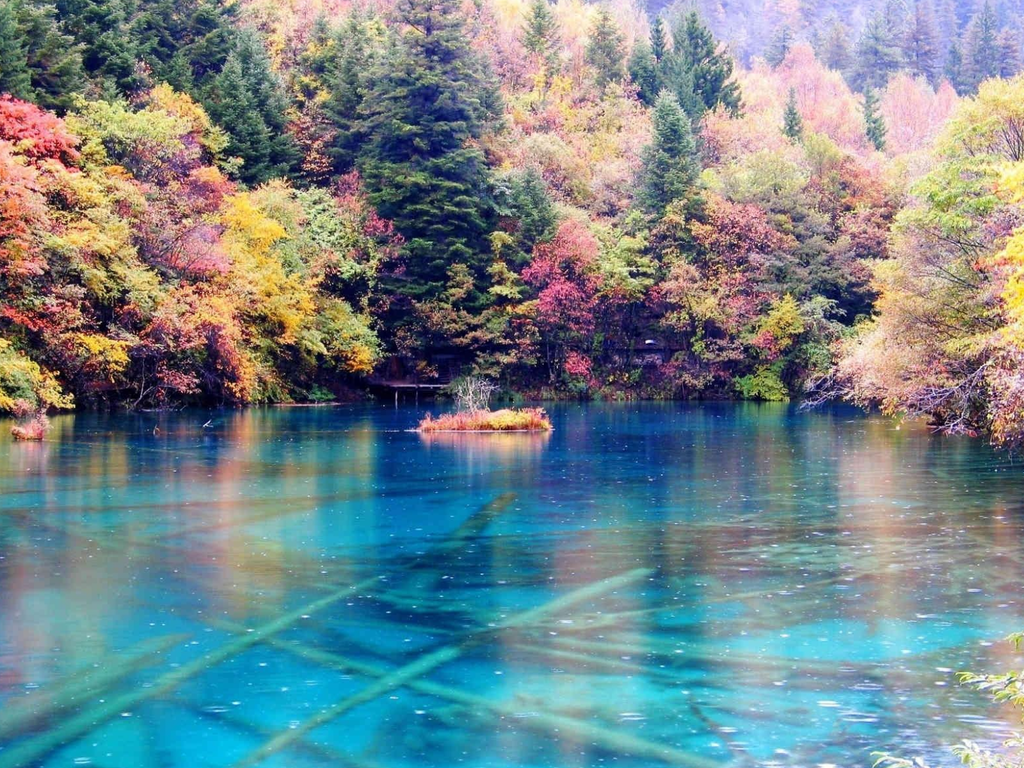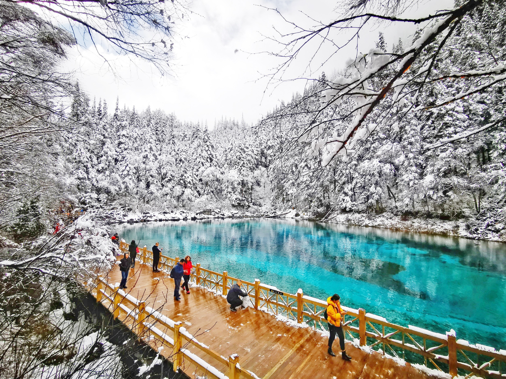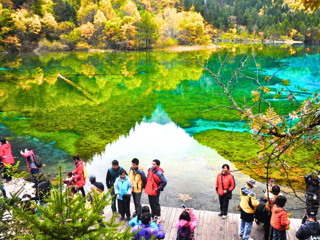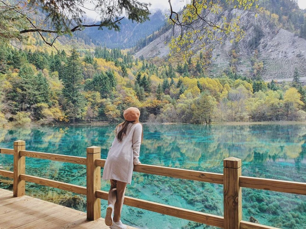 Không chỉ độc đáo ở màu nước, Hồ Ngũ Sắc còn gây ấn tượng bởi đáy hồ nhìn thấy rõ từng thân cây đổ, từng lớp trầm tích xếp chồng tựa như được sắp đặt một cách nghệ thuật. Dù vào mùa thu rực rỡ hay mùa đông tuyết phủ, hồ vẫn giữ được vẻ đẹp siêu thực, trở thành điểm check-in mà bất kỳ du khách nào cũng phải ghé thăm.