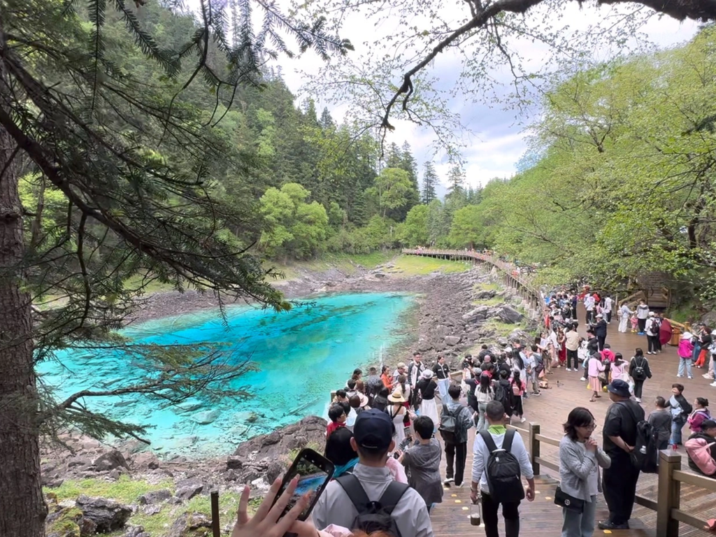 Hồ Ngũ Sắc được xem là “trái tim” của Cửu Trại Câu, nổi tiếng với mặt nước trong suốt và khả năng đổi màu theo ánh sáng, từ xanh lam, xanh ngọc đến vàng nhẹ như phủ kim tuyến. Sự kết hợp của khoáng chất tự nhiên, tảo và ánh mặt trời đã tạo nên hiệu ứng màu sắc kỳ ảo, khiến nhiều du khách ví nơi đây như một tấm gương trời phản chiếu cảnh sắc núi rừng tuyệt đẹp.