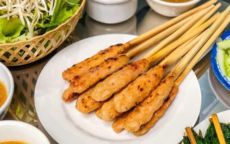 Nem lụi Đà Nẵng là món ăn được làm từ thịt heo xay nhuyễn, trộn đều với gia vị rồi cuốn quanh que tre và nướng trên bếp than. Nem lụi thường được ăn kèm với bánh tráng, rau sống và nước chấm đặc biệt.