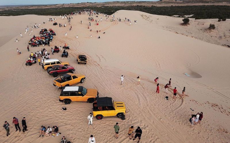 Đồi cát trắng còn được biết đến với tên gọi Đồi Cát Bay hay Đồi Cát Hồng. Đây lại là một đặc sản hiếm có khó tìm và là điểm check-in tại Mũi Né siêu hot. Tại đây, bạn có thể bắt gặp 18 màu sắc của cát như đỏ, trắng hồng, trắng xám, trắng, đen, đỏ đen,... Và vào mỗi thời điểm trong ngày, gió sẽ khiến hình thù của những đồi cát này thay đổi liên tục. Bạn có thể dành thời gian đầu ngày thức dậy thật sớm, đi bộ lên đồi cát và đón bình minh tại đây. Sau đó, bạn cũng có thể tham gia chơi trượt ván cát hoặc lái mô tô địa hình rất vui nhộn.