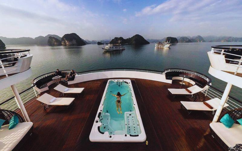 Du thuyền Hạ Long không chỉ mang đến trải nghiệm du ngoạn mà còn đi kèm với những dịch vụ cao cấp, đáp ứng mọi nhu cầu của du khách. Từ các bữa ăn sang trọng với thực đơn phong phú gồm các món hải sản tươi ngon, đến các tiện ích hiện đại như phòng nghỉ tiện nghi, spa, bể bơi và phòng gym.