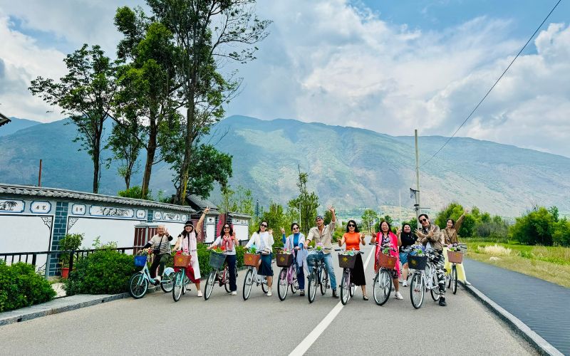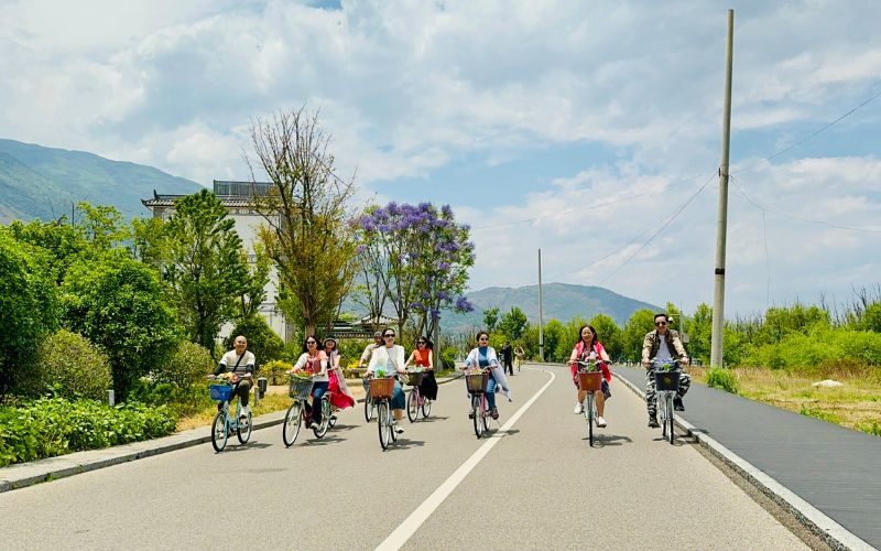 Nếu không muốn ngồi thuyền hay tản bộ thì đạp xe đạp quanh hồ cũng là hoạt động nên trải nghiệm. Ở Đại Lý có nhiều cửa hàng cho thuê xe đạp nên bạn có thể dễ dàng chọn chiếc xe phù hợp.