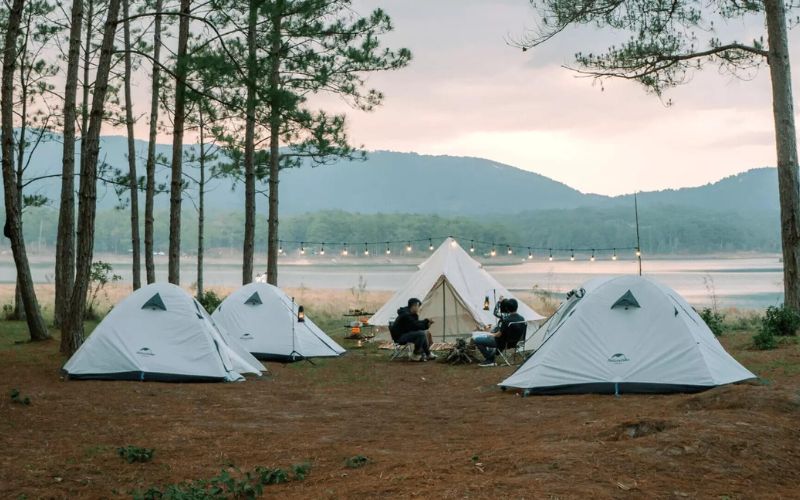 Một trải nghiệm được nhiều nhóm bạn hay các gia đình trẻ ưa chuộng chính là cắm trại hồ Tuyền Lâm. xung quanh khu vực bờ hồ có rất nhiều bãi đất trống và bằng phẳng để bạn có thể dựng lều và nghỉ qua đêm