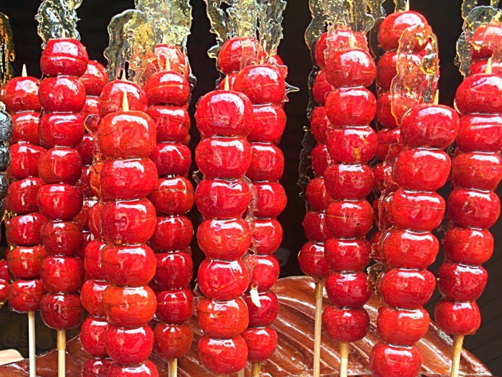 Kẹo hồ lô là biểu tượng ngọt ngào và quen thuộc của Cáp Nhĩ Tân – món quà tuổi thơ gắn liền với hình ảnh những xiên trái cây phủ lớp đường đỏ óng ánh. Truyền thống, kẹo được làm từ táo gai xiên thành chuỗi, sau đó nhúng qua lớp đường nấu chảy để tạo nên lớp vỏ giòn tan, ngọt ngào bao quanh phần nhân chua nhẹ bên trong. Khi thưởng thức, hương vị hòa quyện giữa chua – ngọt – giòn tạo cảm giác thú vị khó tả, đặc biệt giữa tiết trời lạnh buốt, cắn miếng kẹo hồ lô như cảm nhận được cả mùa đông tan chảy trong miệng.