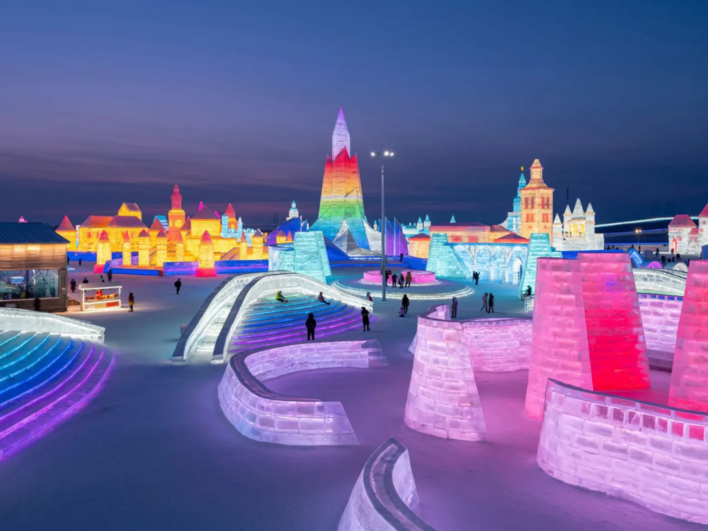 Mùa đông là thời điểm Cáp Nhĩ Tân đẹp nhất và nổi tiếng nhất trong năm, khi cả thành phố chìm trong sắc trắng tinh khôi của tuyết. Đây cũng là lúc diễn ra Lễ hội Băng Tuyết quốc tế, sự kiện hoành tráng quy tụ hàng trăm công trình điêu khắc băng tuyết khổng lồ, được thắp sáng rực rỡ vào ban đêm. Du khách sẽ được chiêm ngưỡng những tòa lâu đài băng lung linh như cổ tích, công viên băng tuyết rộng lớn cùng không khí lễ hội sôi động, đậm chất nghệ thuật mùa đông.