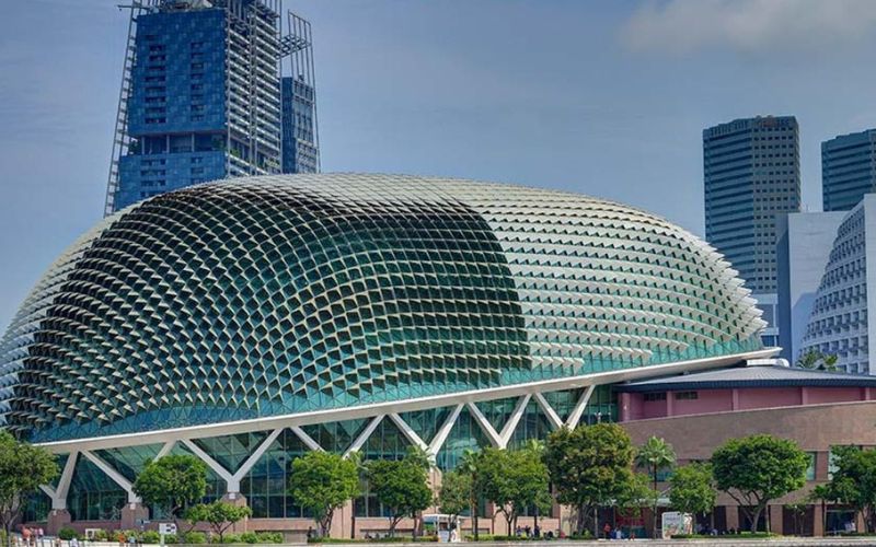 Esplanade là trung tâm biểu diễn nghệ thuật đẳng cấp thế giới. Thiết kế bên ngoài của cụm nhà hát có hình dáng giống như một trái sầu riêng. Hệ thống mái vòm gắn hơn 7.000 tấm chắn nắng bằng nhôm hình tam giác có thể nói là điểm nhấn của công trình này. Theatres on the Bay Esplanade là nơi tổ chức các sự kiện văn hóa cùng hàng loạt show diễn lớn trong và ngoài nước.