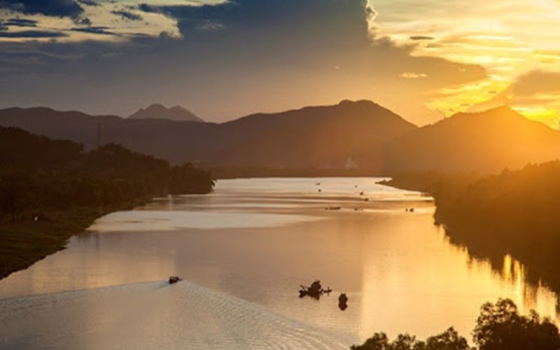 Sông Hương, hay còn gọi là Hương Giang, bắt nguồn từ dãy núi Trường Sơn hùng vĩ, chảy qua thành phố Huế và đổ ra biển Thuận An. Dòng sông dài 80km, uốn lượn quanh co như một dải lụa mềm mại, tô điểm thêm cho bức tranh thiên nhiên Huế thêm thơ mộng.
