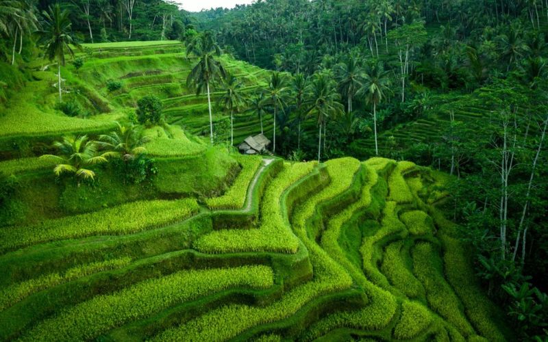 Sau khi tận hưởng những khung cảnh xinh đẹp, lãng mạn và cổ kín thì mảnh ghép còn lại trong bộ sưu tập của bạn nằm tại làng Tegalalang. Nơi đây có cánh đồng lúa xanh tươi trên từng bậc ruộng trải dài tít chân trời mang đến một bức tranh làng quê vừa yên tĩnh lại vừa thoáng đãng chính là một địa điểm du lịch Bali được gợi ý dành cho bạn.