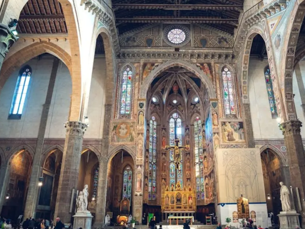 Ngoài ra, nơi đây còn lưu giữ nhiều tác phẩm nghệ thuật giá trị, bao gồm các bức bích họa của danh họa Giotto di Bondone, mang đậm dấu ấn của thời kỳ Phục Hưng. Mỗi chi tiết kiến trúc và nghệ thuật đều góp phần tạo nên một không gian vừa linh thiêng vừa giàu giá trị thẩm mỹ.