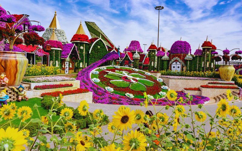 Nơi đây được mệnh danh là "vườn hoa kỳ diệu" với hàng triệu bông hoa được tạo thành những hình thù độc đáo, rực rỡ sắc màu. Du khách có thể dạo bước giữa những con đường hoa, chụp ảnh lưu niệm và tận hưởng bầu không khí trong lành, tươi mát.