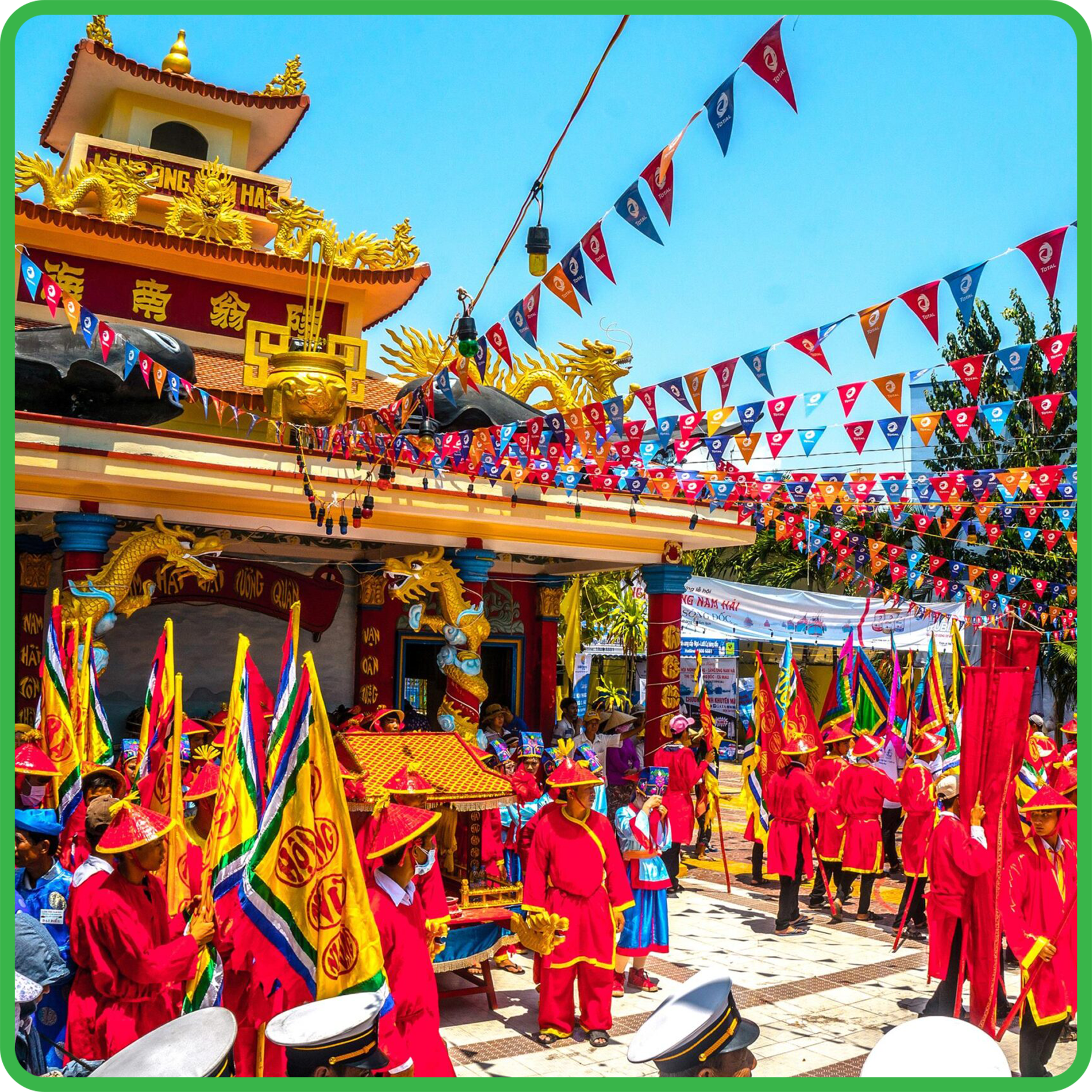Lễ hội bắt đầu với lễ rước Ông rất trang trọng và hoành tráng, sau đó là các hoạt động như hát bội, đua thuyền, múa lân, trình diễn nghệ thuật dân gian… Đây là dịp để ngư dân thể hiện lòng biết ơn với biển cả, cầu mong một mùa đánh bắt bội thu và sóng yên biển lặng.