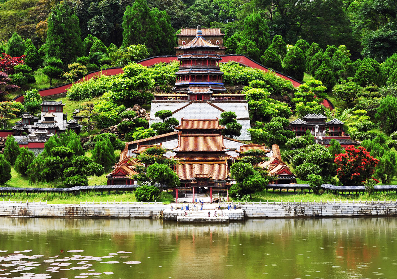 Trưa: Đoàn dùng bữa trưa tại nhà hàng địa phương. Sau đó ghé tham quan “Làng văn hóa dân tộc Trung Hoa – Trung Hoa Cẩm Tú” là thế giới thu nhỏ của nền văn hóa Trung Hoa, được xây dựng trên diện tích khoảng 30 hata với 120 mô hình lớn nhỏ theo tỷ lệ 1/15 so với cảnh thật. Quý khách vào tham quan “Trung Hoa Cẩm Tú”, người ta có thể thu nhận được toàn bộ những nét tiêu biểu về đất nước Trung Quốc trong 5000 năm lịch sử.