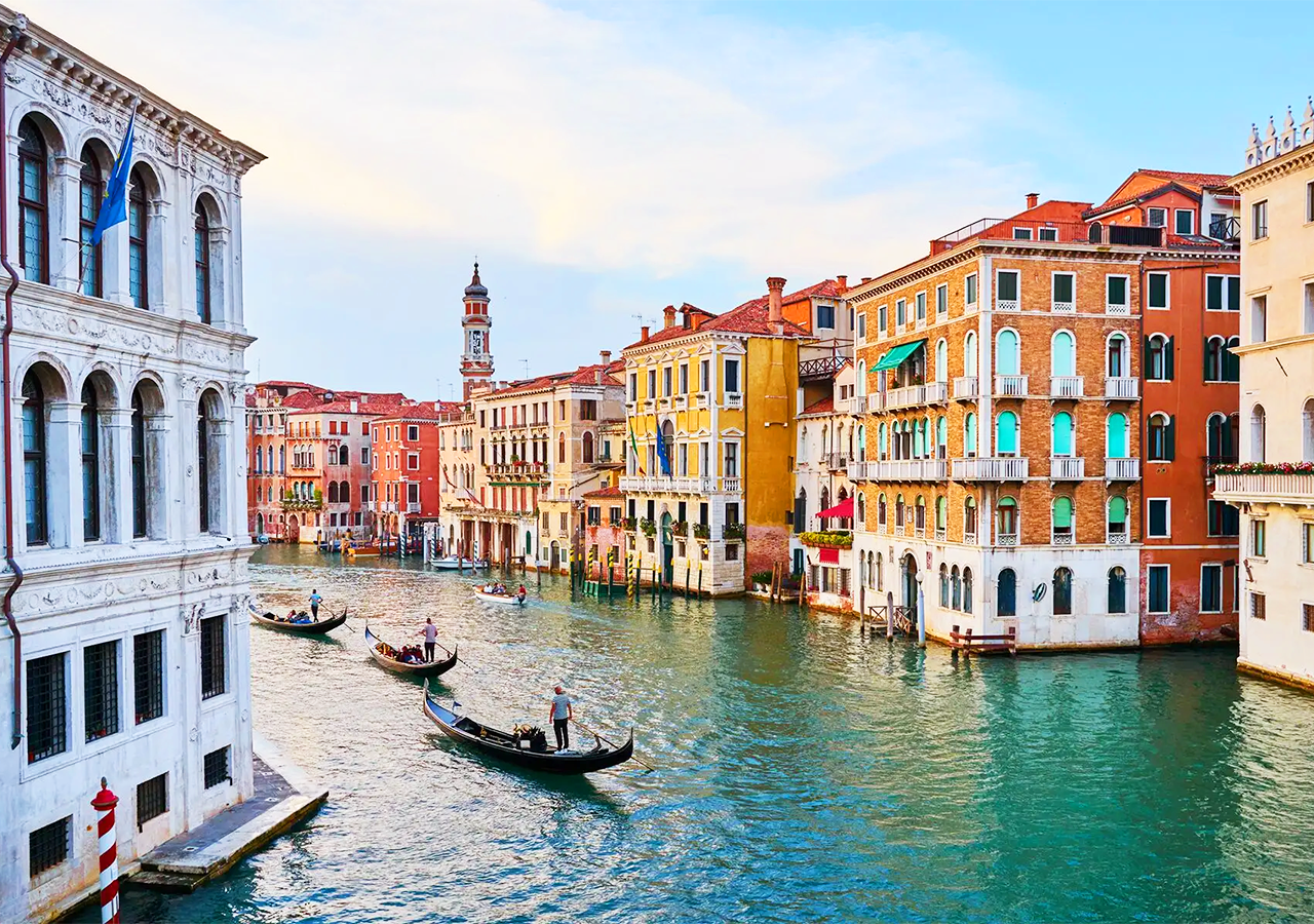 Sáng: Đoàn dùng điểm tâm sáng tại Khách sạn sau đó trả phòng khởi hành đi tham quan Venice một trong những Thành Phố lãng mạn nhất thế giới. Vùng đất của những chiếc mặt nạ hóa trang hay thành phố của những cây cầu và kênh rạch. Trải nghiệm dạo thuyền từ bến tàu Tronchetto đến San Marco và tham quan đảo Venice (đã bao gồm vé) - một trải nghiệm đáng nhớ với chuyến ngồi tàu tận hưởng vẻ đẹp quyến rũ, thơ mộng của thành phố từ xa và các công trình kiến trúc ở hai bên bờ với: