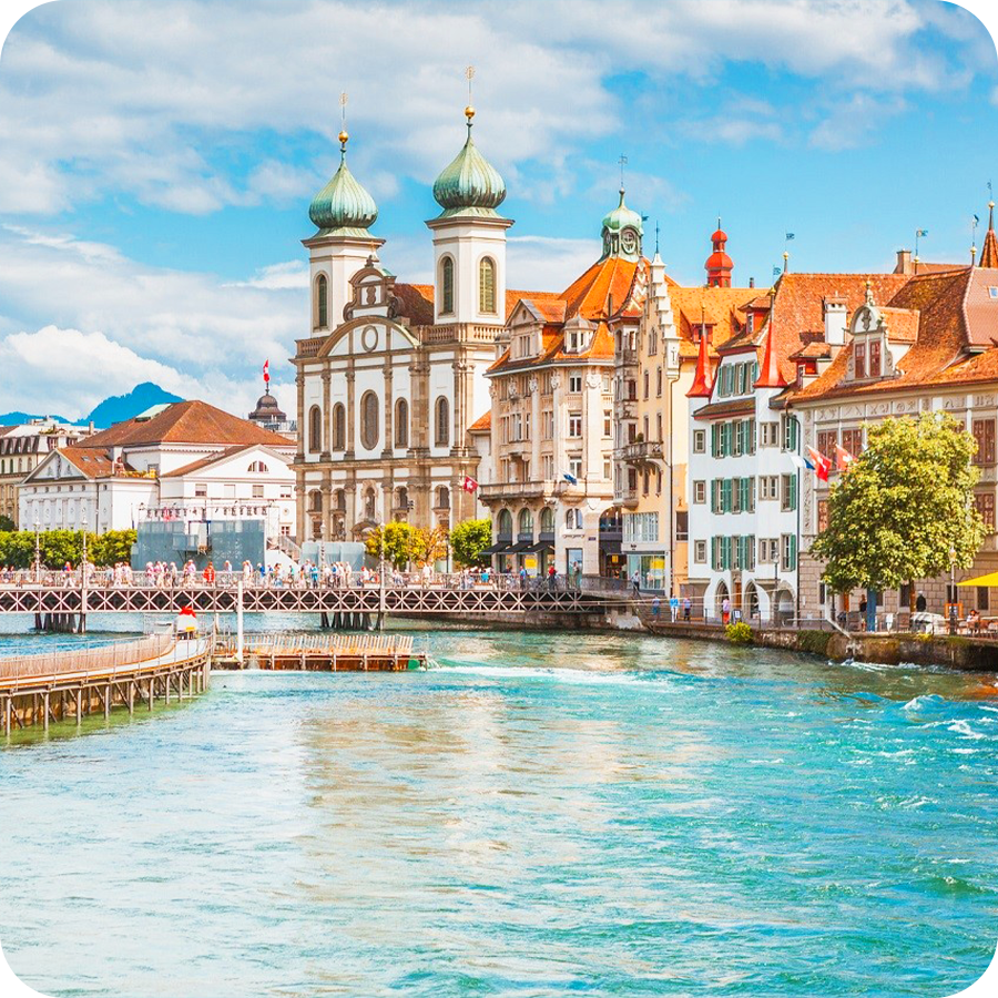 Trưa: Đoàn dùng bữa trưa tại nhà hàng sau đó tiếp tục di chuyển đến với thành phố Luzern cổ kính được điểm tô bởi những dòng nước trong xanh của dòng sông Reuss và tham quan: