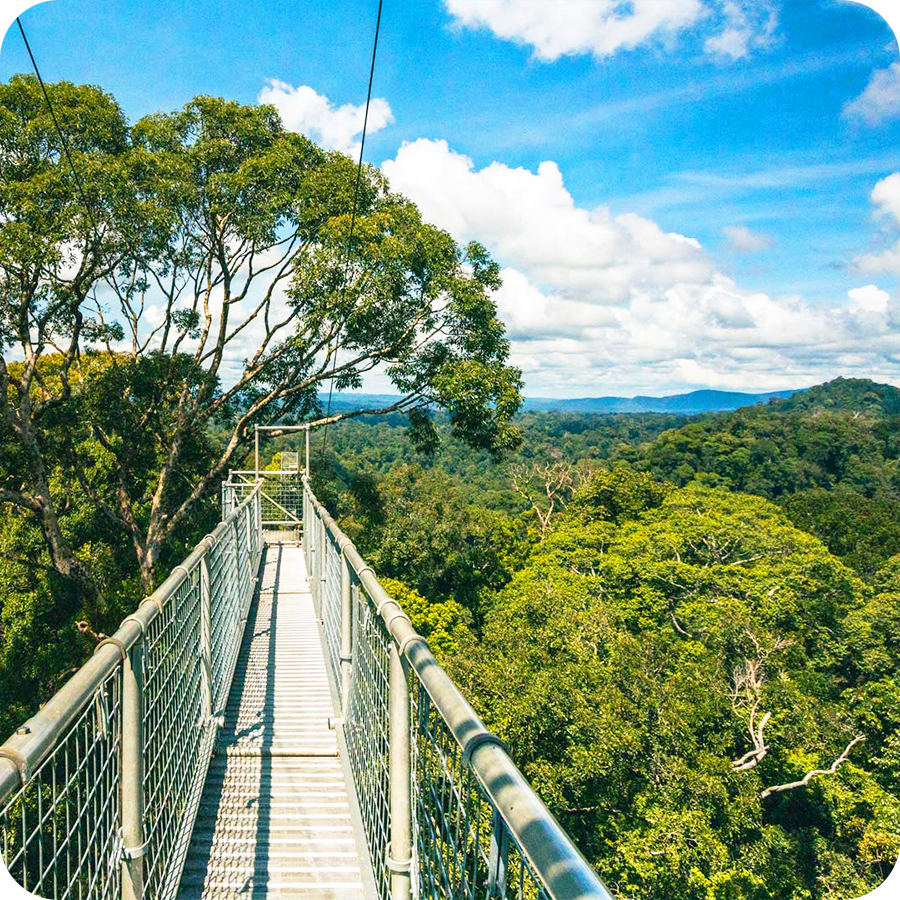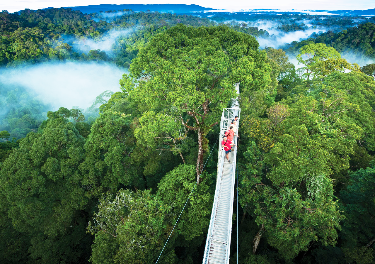Đến trạm dừng chân, Quý khách nghỉ ngơi, sau đó bắt đầu chinh phục “The top of Temburong” – Quý khách có dịp hoà mình vào thiên nhiên trên dòng Temburong len lõi giữa rừng cây rậm rạp bằng thuyền dài truyền thống của Brunei. Sau đó tiếp tục vào thẳng khu rừng này . Quý khách có cơ hội quan sát cả một hệ sinh thái rộng lớn từ trên cao với 1 trải nghiệm đến kinh ngạc mà khu rừng nhiệt đới này mang lại.