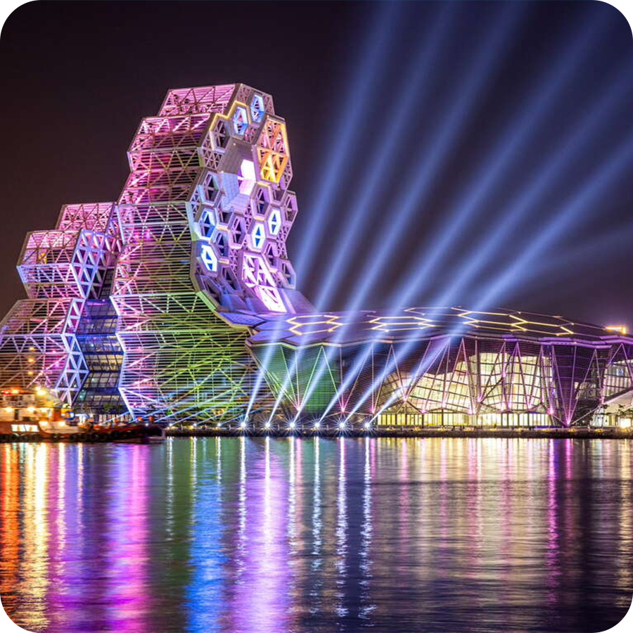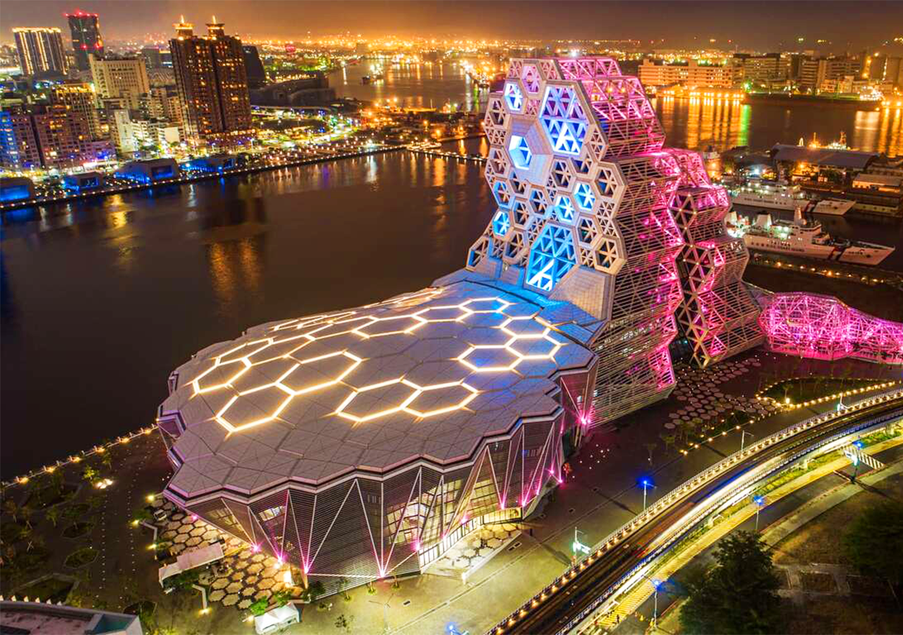 ● Chụp ảnh tại tòa nhà trung tâm âm nhạc Cao Hùng (Kaohsiung Music Center). Nơi đây là khu biểu diễn âm nhạc kết hợp cảnh đẹp của cảng và vịnh, tạo nên một địa điểm tham quan và giải trí mới.