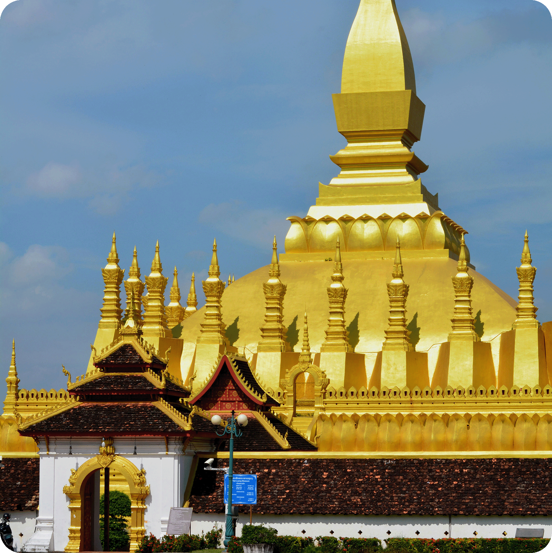 Tháp Thạt Luổng: là kiệt tác kiến trúc mang dấu ấn văn hóa và tâm linh, biểu tượng thiêng của đất nước Lào. Công cụ này có thể trình bày chi tiết cụ thể về kiến trúc Phật giáo. Viền bên đó là biểu tượng cho trí tuệ, sự sáng tạo và tinh thần đoàn kết bền bỉ của người dân Lào.