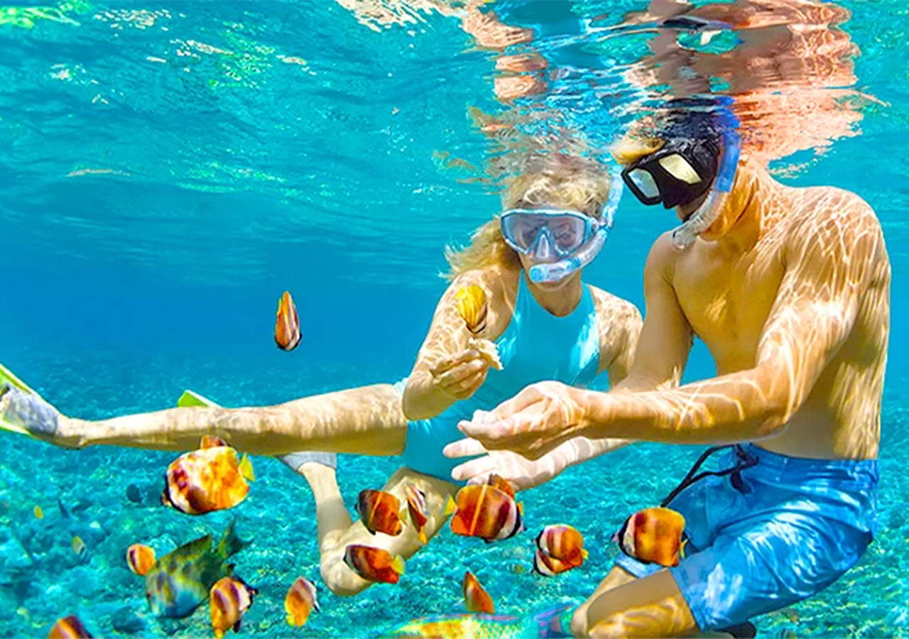 Xe đưa Qúy khách đến cảng biển, lên tàu và bắt đầu cuộc trải nghiệm hành trình Câu cá lặn ngắm san hô trên tàu. Qúy khách được cung cấp thiết bị câu cá (dây câu, mồi) và được trang bị áo phao, kính lặn, ống thở khi tham gia lặn biển ngắm san hô.