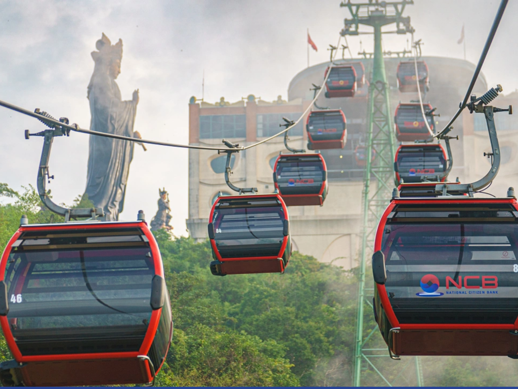 Tuyến cáp treo Vân Sơn đưa du khách từ chân núi lên đỉnh núi Bà Đen, có chiều dài 2,055.36m. Với vận tốc 6m/s, tuyến cáp số 1 rút ngắn thời gian di chuyển của du khách lên đỉnh cao 986m của núi Bà Đen, từ 2 giờ theo đường núi nguy hiểm trở xuống còn 8 phút đi cáp treo, thoả khát khao đặt chân tới “ nóc nhà Nam Bộ” của du khách mọi lứa tuổi. Tuyến cáp treo Chùa Hang, từ chân núi lên Chùa Bà Đen có chiều dài 1,246.83m. Với vận tốc 6m/s, thời gian di chuyển chỉ 5 phút và công suất vận chuyển 4.400 khách/giờ, gấp đôi tuyến cáp cũ dẫn lên Chùa Bà Đen vẫn đang vận hành, tuyến cáp Chùa.
