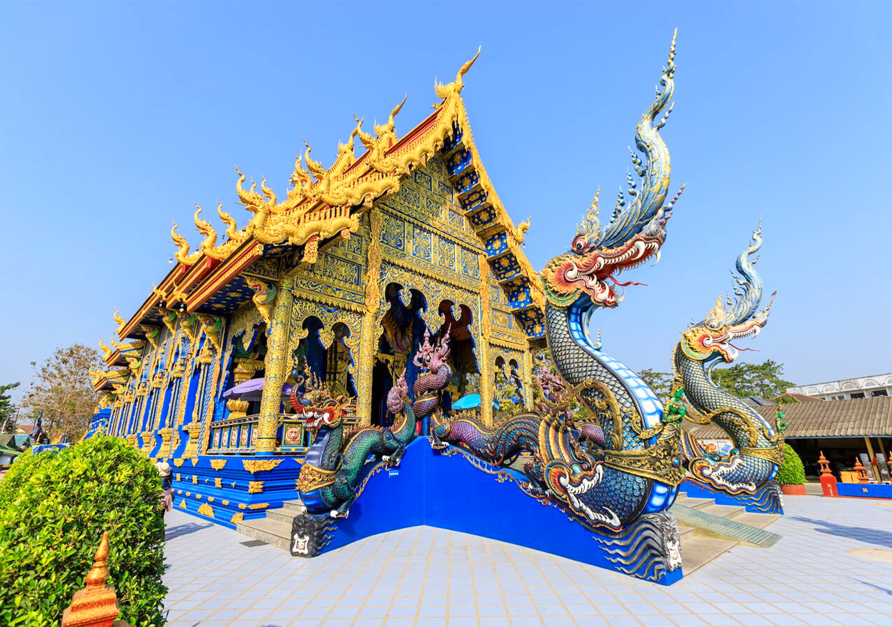 Di chuyển tham quan Chùa Xanh - Blue Temple với kiến trúc độc đáo và lạ mắt.