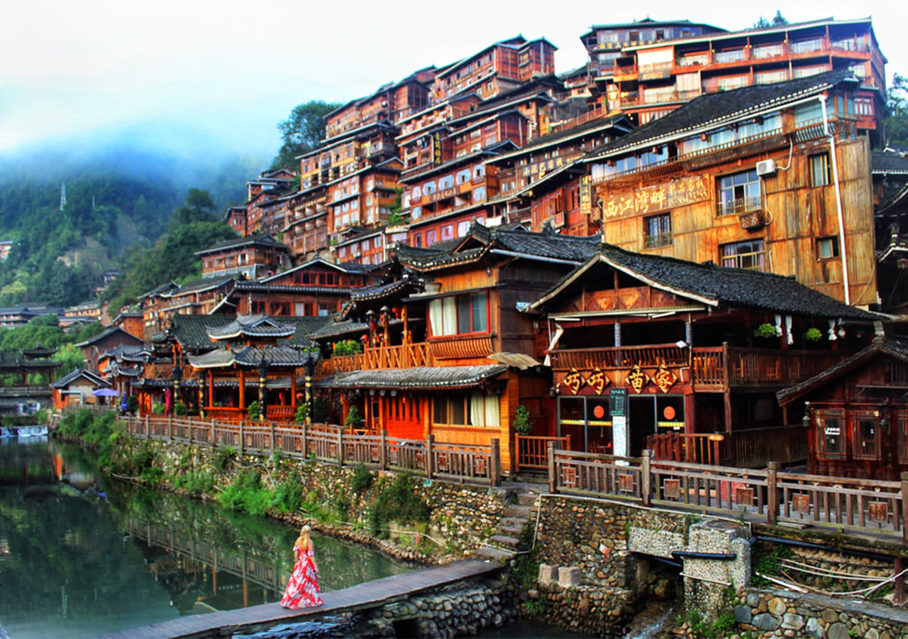 Sáng: Đoàn dùng điểm tâm sáng và làm thủ tục trả phòng. Sau đó, Sau đó, đoàn di chuyển về Phượng Hoàng Cổ Trấn – Trấn cổ 1300 năm tuổi, là điểm check-in hàng đầu tại Châu tự trị người Miêu - Quý Châu. Nổi tiếng với những ngôi nhà cổ kính, nép mình bên dòng Đà Giang hiền dịu. Nơi đây từng đi vào phim ảnh, tiểu thuyết Chuyện Biên Thành của Thẩm Tùng Văn xoay quanh mối tình của nàng Thúy Thúy tạo nên nét đặc sắc không lẫn vào đâu của Tình Tương Tây.