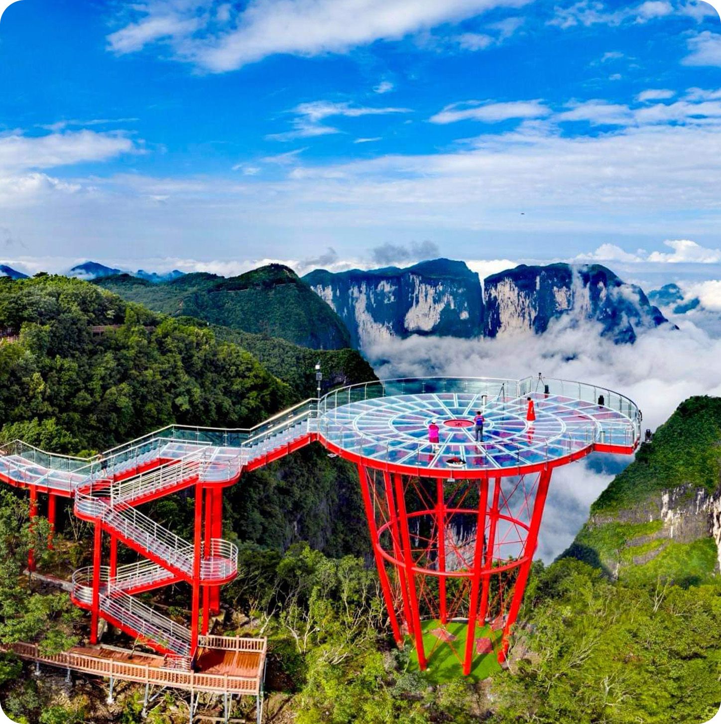 - Cầu Kính Đại Hiệp Cốc có tổng chiều dài 430m, chiều dài mặt cầu 375m, rộng 6m, nằm giữa thung lũng ở Trương Gia Giới, thiên đường du lịch của Trung Quốc (Chi Phí Tự Túc).