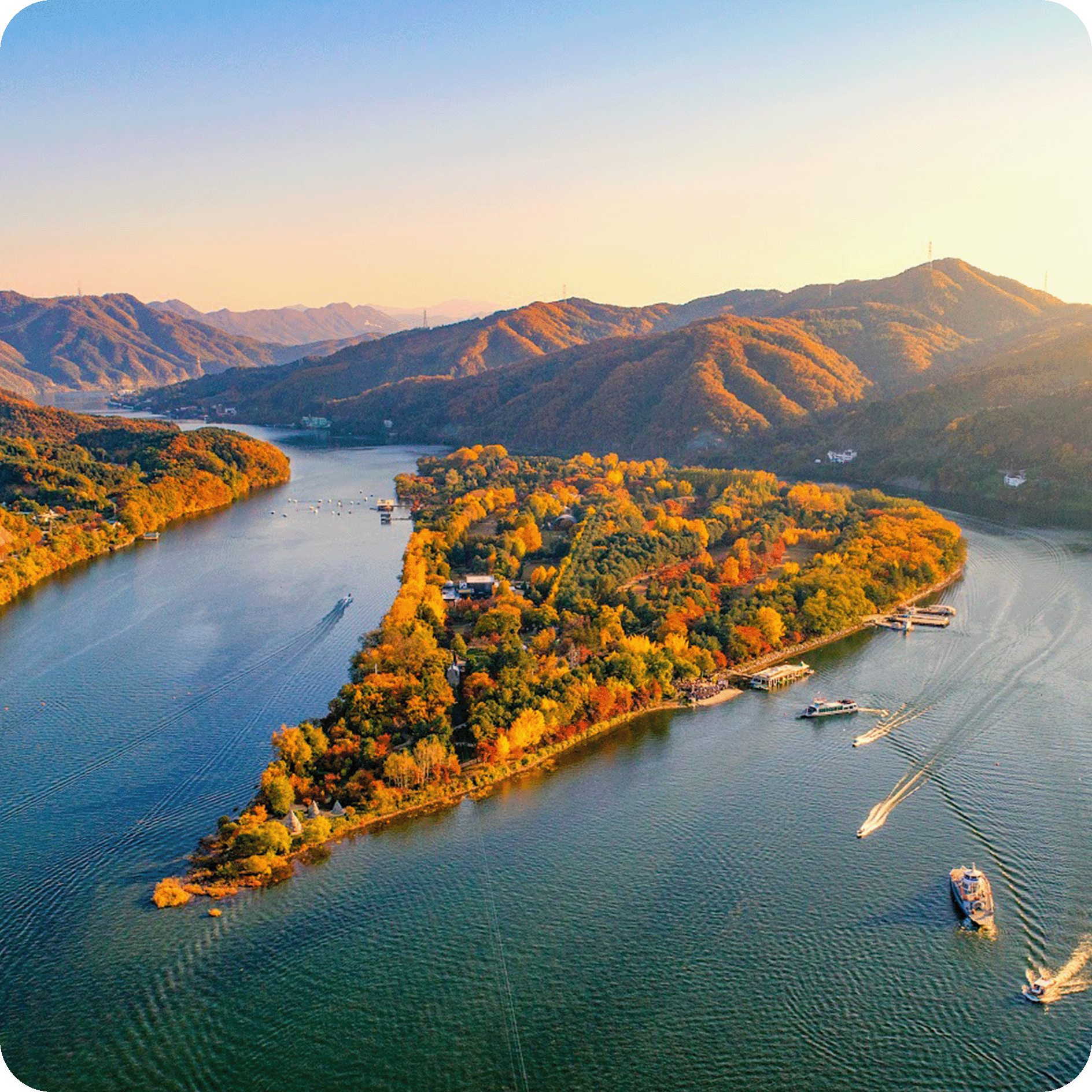 Đảo Nami – Nổi tiếng với những bản màu sắc riêng theo từng mùa: Mùa thu rực rỡ ánh vàng đỏ của tán cây phong và rừng ngân hạnh; Mùa hè có cây cối mướt xanh; Mùa đông huyền ảo với tuyết phủ trắng xóa cuối cùng đặc biệt là vào; Mùa xuân hàng trăm cây hoa anh đào nhuộm sắc hồng rực rỡ, với mùi hương ngọt ngào phảng phất không khí và là nơi ra đời của nhiều bộ phim truyền hình nổi tiếng của Hàn Quốc đã làm dấy lên cơn sốt nghệ thuật thứ bảy tại các nước CHÂU Á và thế giới như: "Bản Tình Ca Mùa Đông”.